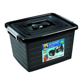 Kit 4 Caixa Organizadora Multiuso Preta com Tampa 30L Caixa Organizadora Container Preta com Trava 30 Litros