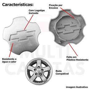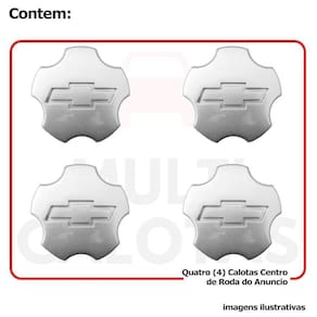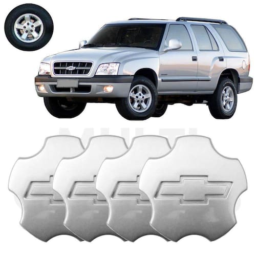 4x Calota Centro Roda GM Blazer Advantage Pitbull 03 a 08 Calota Centro de Roda em Plástico de Alta resistência,Fabricado com os mesmos padrões e exigências da montadora.Com logotipo incluso. Calota Centro de Roda para o Chevrolet Blazer Advantage (Modelo Pitbull) 2003 a 2008. CARACTERÍSTICAS:- Fabricado em Plástico Resistente- Com dupla camada de verniz- Resistente a água e calor- Feito de acordo com os padrões da fabricante- Fixação: por Encaixe- Cor: Prata ITENS INCLUSOS:- Quatro (4) calotas centro de roda. DIMENSÕES (Unitário)- Diâmetro: 10 cm- Altura: 2,5 cm INSTALAÇÃOA instalação é feita de forma simples, podendo ser feita por você mesmo. GARANTIAGarantia de 30 dias para defeitos de fabricação.