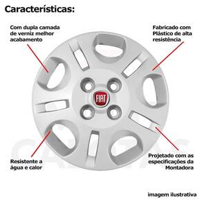 Kit 4 calota fiat mille palio siena uno aro 13 emblema 071cb Calota em plástico de alta resistência, Fabricado pela grid calotas com os mesmos padrões e exigências da montadora. Com logotipo incluso. Jogo de calotas para a linha fiat para roda de ferro aro 13. Não serve nos fiat strada - fiat palio adventure - fiat nova fiorino Características: - fabricado em plástico resistente - com dupla camada de verniz - resistente a água e calor - feito de acordo com os padrões da montadora - fixação: por parafusos - furação: 4x100 - cubo: baixo - cor: prata - referência: 071cb - marca: grid calotas Itens inclusos: - um 1 kit com quatro 4 calotas com emblema incluso. Dimensões unitário - diâmetro: 37 cm - altura: 4 cm Instalação A instalação é feita de forma simples, podendo ser feita por você mesmo. Não necessita retirar todos os parafusos. de 30 dias para defeitos de fabricação. Sobre o envio Envio podendo ser feito até o próximo dia útil após confirmação de pagamento. em até 3 , em caso de boleto Política de troca Sempre estamos interessados em sua satisfação. Caso não receba o produto exatamente como no anúncio, com algum defeito ou no transporte, Você poderá trocar e devolver a qualquer momento, sem pressa, sem prazo e principalmente sem custos desde que o produto esteja sem uso e na mesma condição da data da compra . No caso de devolução por compra de tamanho errado, desistência ou mudança de intenção, Neste caso o cliente deve arcar com o custo da devolução da mercadoria e nós arcamos com o custo de reenvio Da mercadoria nova. Marca: Não Informado Ean: 7891028227219