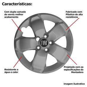 características: - fabricado em plástico resistente - com dupla camada de verniz - resistente a água e calor - feito de acordo com os padrões da montadora - fixação: por parafuso - cubo: padrão - cor: cinza grafite - referência: 301cp - marca: grid calotas