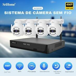 Sistema de 4 Câmeras IP 5MP Wi-Fi Full HD NVR Sem Fio - Proteja o Que Mais Importa com Tecnologia de Ponta! Com nosso sistema de câmeras desenvolvido para sua segurança, você não precisa mais se preocupar. Este sistema avançado oferece alta definição, proteção contra condições climáticas, visão noturna colorida e muito mais! Resolução e Alta Definição – Capture tudo em ótima qualidadeCom 4 câmeras de alta definição e NVR para armazenar e gerenciar suas imagens, você cobre todos os ângulos da sua propriedade. A alta definição permite que você veja rostos, placas de carros, objetos e até pequenos movimentos com extrema clareza. Alta Definição 5MP: 1440P (2560*1440)Definição Média 2MP: 1080P (1920*1080Detecção de Movimentos – Tenha acesso a qualquer atividade suspeitaAs câmeras identificam movimentos e atividades suspeitas com precisão e enviam alertas instantâneos diretamente para seu celular, permitindo que você aja rápido, mesmo à distânciaDefina Zonas Especificas Para Detectar via App No app ou NVR, você pode: -Definir áreas específicas para monitorar (ex.: portão, garagem). -Ajustar a sensibilidade (evitar alarmes falsos por pequenos movimentos). Programar horários (ex.: ativar detecção só à noite). Monitoramento Dia e Noite Sua tecnologia inclui luz infravermelha, detecção de movimentos e visão noturna colorida, permitindo captar os mínimos detalhes durante a gravação, protegendo todo o perímetro de sua propriedade. Tenha Imagens Simultâneas – Visualize cada canto de sua propriedadeO NVR permite visualizar as imagens das 4 câmeras simultaneamente em um monitor, dividindo a tela em 4 quadros (modo split-screen). Isso facilita o monitoramento em tempo real de todas as áreas cobertas. Resistente à Condições ClimáticasCertificação IP66, as câmeras são Impermeáveis e funcionam em qualquer clima de -10°C a 50°C. Proteja o que é seu, em qualquer situação!Visão Noturna Colorida e Áudio Bidirecional As câmeras possuem Visão Noturna Colorida e Áudio Bidirecional, capte detalhes e se comunique através das câmeras com uma qualidade de áudio surpreendente.Além disso, suas 8 luzes de led fazem você ver tudo com clareza, mesmo no escuro.Iluminação Automática O padrão da visão noturna é em preto e branco, o holofote acenderá automaticamente quando um ser humano for detectado e depois mudará para visão noturna colorida. Conexão à longa distância – Sem interferência de sinalProjetado para funcionar em uma distância de 30 metros entre as câmeras e o NVR em ambientes sem obstáculos.Alcance e VisibilidadeÀ noite: Alcance Efetivo (Modo Infravermelho - Preto e Branco):8 a 12(para detecção de movimento básico,). Se houver iluminação como postes ou refletores, o alcance será maior. De dia: Alcance de 15 a 20 m.Em uma casa ou estabelecimento comercial de tamanho médio, você pode posicionar as câmeras em locais estratégicos sem se preocupar com a perda de sinal. Monitoramento por APP – Receba alertas e notificações Com o aplicativo SriHome, você acessa as câmeras de qualquer lugar, recebe alertas de movimento com notificações e grava vídeos diretamente no NVR ou no cartão TF. Especificações Técnicas NVR (Gravador de Vídeo em Rede): Conexões: Wi-Fi, A-out, HD-Out VGA, LAN, USB, DC12V Peso: 585g Dimensões: 26cm (largura) x 4,5cm (altura) x 22cm (profundidade) Alimentação: Adaptador AC/DC (Input: 100-240V 50/60Hz 0.8A / Output: 12V – 2A) Armazenamento: Suporta HDD de até 16TB (não incluso) Câmeras: Quantidade: 4 câmeras Wi-Fi Resolução: 5MP (Alta Definição) 1440P (2560*1440), 1080P (1920*1080 Recursos: PTZ, visão noturna colorida, 8 luzes LED, áudio bidirecional, detecção de movimento Lente: 3mm Movimentação: PTZ Panorâmica: 345° Inclinação: 90° Zoom Digital: 3x Proteção: IP66 (impermeável) Temperatura de Funcionamento: -10°C a 50°C Peso por Câmera: 355g Dimensões por Câmera: 11cm (altura) x 13cm (largura) x 14cm (profundidade) Adaptadores para Câmeras:(Input: 100-240V 50/60Hz 0.45A / Output: 12.0V—0.5AAlimentação: Adaptador AC/DC (Input: 100-240V 50/60Hz 0.45A / Output: 12.0V—0.5A 6.0W) Recursos e Funcionalidades Visualização Remota: Acesso via aplicativo "SriHome" (disponível para iOS e Android). Visão Noturna: Luzes LED brancas e infravermelhas para visão noturna colorida. Áudio Bidirecional: Permite comunicação através das câmeras. Detecção de Movimento: Alertas em tempo real no celular. Wi-Fi: Conexão sem fio a redes Wi-Fi 2.4G e 5G Cartão TF: Entrada para cartão de até 128GB (cartão não incluso). Conteúdo da Embalagem 1x NVR Wi-Fi 1x Adaptador para NVR (Input: 100-240V 50/60Hz 0.8A / Output: 12V – 2A) 1x Cabo LAN (RJ45) 1x Mouse USB 1x Manual de Instruções 4x Câmeras de Segurança 4x Adaptadores para Câmeras (Input: 100-240V 50/60Hz 0.45A / Output: 12.0V—0.5A 6.0W) 6x Parafusos Grandes 4x Parafusos Pequenos 6x Buchas 4x Pinos Extratores 1x Chave para Parafusar