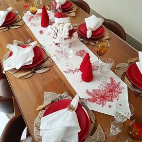 Os caminhos de mesa são peças que encantam e embelezam sua mesa, tornando cada refeição única e ainda mais especial, agregando delicadeza à decoração da sua mesa de jantar ou outros móveis da cozinha. Esta opção com tema natalino deixa seu ambiente ainda mais bonito e com o toque encantado da magia do natal