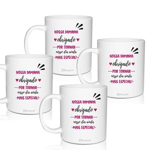 Kit 4 Canecas Brancas Personalizadas Agradecimento Daminhas As Canecas Convite são uma forma linda e deliciosa de convidar ou agradecer os pequenos por participarem de uma data tão única. Com capacidade de 300 ml, você tem a opção de encher as canecas com todo tipo de doce e assim encantar as futuras Daminhas. O sim delas será GARANTIDO. Conteúdo: 4 Canecas Convite Branca Personalizado Daminha Capacidade: 300 ml Cor: Branco Material: Policarbonato Quantidade: 4 Peças Ean: 7897581923254