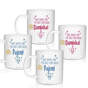 Kit 4 Canecas Convite Pajem E Daminha As canecas convite são uma forma linda e deliciosa de convidar ou agradecer os pequenos por participarem de uma data tão única. Com capacidade de 300 ml, você tem a opção de encher as canecas com todo tipo de doce e assim encantar os futuros daminha e pajem. O sim deles será garantido Conteúdo: 2 canecas convite branca personalizado daminha e 2 canecas convite branca personalizado pajem Especificações: capacidade: 300 ml, cor: branco, material: policarbonato liso, não é porcelana, altura: 8,3 cm, diâmetro: 7,5 cm, quantidade: 4 peças Ean: 7897581923780
