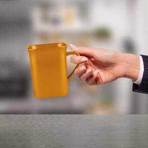 Caneca Quadrada 250mL com design exclusivo, feita em Plástico Premium PP , atóxico, resistente, acabamento impecável, cores vibrantes com pigmento de efeito metalizado, pode ser levado ao micro-ondas e máquina de lavar louças. Imagens meramente ilustrativas.