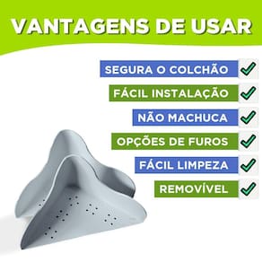 Se o seu colchão fica saindo do lugar a toda hora, temos a solução com as cantoneiras. Elas são excelentes para impedir o colchão de deslizar e possuem fácil instalação, através de parafusos no box da cama.