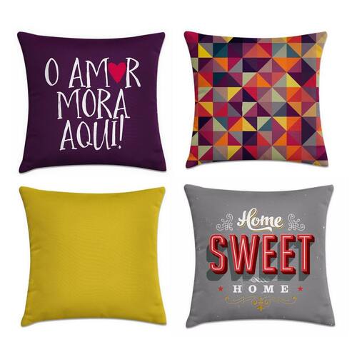 Kit 4 Capas Almofadas Home Sweet Home 45X45 Kit 4 Capa de almofada decorativa, ideal para decoração do seu lar. Composição:tecido microfibra com zíper invisível - tamanho 45x45 - verso na cor que combine com a estampa. A microfibra importada é um dos melhores tecido em questão de qualidade x custo, o seu toque é suave causando uma sensação boa, suas cores são vibrantes , o ideal para decorar seu lar.