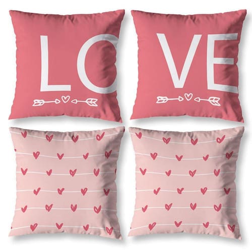 Kit 4 Capas De Almofada Para Sala 40Cm X 40Cm Estampada Love