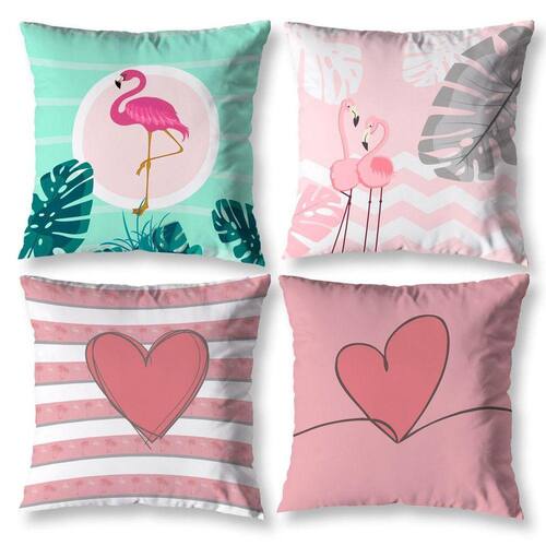 Kit 4 Capas De Almofada Sala 40Cm X 40Cm Estampadas Flamingo