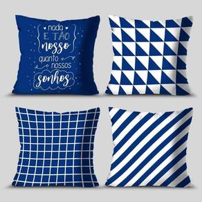 Kit 4 Capas de Almofadas Decorativa Nossos Sonhos Blue -