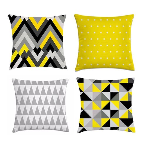 Kit 4 Capas De Almofadas Geométrica Preto E Amarelo 45X45 Kit 4 Capa de almofada decorativa, ideal para decoração do seu lar. Composição:tecido microfibra com zíper invisível - tamanho 45x45 - verso na cor que combine com a estampa. A microfibra importada é um dos melhores tecido em questão de qualidade x custo, o seu toque é suave causando uma sensação boa, suas cores são vibrantes , o ideal para decorar seu lar. Ean: 2960004804357