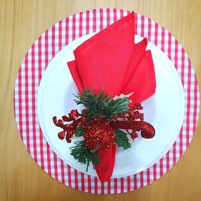 Especificações técnicas Marca: Maison Charlô Modelo: Xadrez Vermelho Branco Quantidade no kit: 04 Material: Tecido 100% poliéster Medida cada : 35 x 35 cm Importante: Não acompanha base Marca: Não Informado Ean: 7898967933003