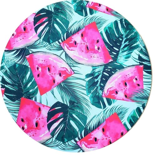 Versatilidade e Sustentabilidade: Este kit com 4 capas para sousplats com tema tropical melancia é ideal para quem busca praticidade e um produto reutilizável. São perfeitos para adicionar elegância à sua mesa posta em qualquer ocasião.