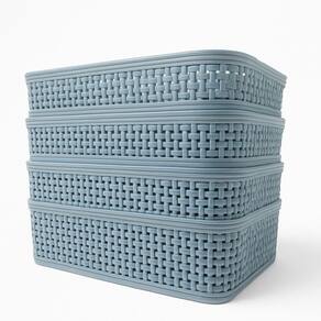 PLÁSTICO RESISTENTE: Plástico de alta durabilidade. FÁCIL HIGIENIZAÇÃO: Fácil de limpar, somente com água e detergente neutro. EMPILHÁVEL: Os cestos são empilháveis, otimizando espaço para guardar. VERSATILIDADE: Ideal para diversos ambientes e usos. 4 PEÇAS: O Kit possui 4 cestos, para uma organização completa e coordenada.