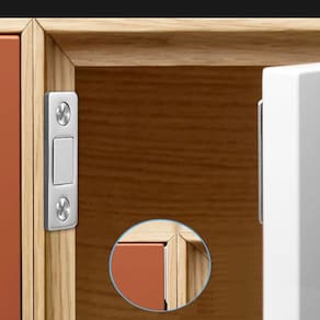 No canto interno da porta, encontre um lugar onde o imã fará contato com a guarnição do armário. Use a fita adesiva dupla face ou os parafusos para prender as chapinhas