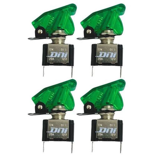 Kit 4 chave tic-tac tipo caça 2 posições botão liga desliga 12v capa verde led comutadora dni2084-vd