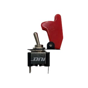 - código: dni 2083 - aplicação: uso geral, tunning; tic-tac tipo caça; - 2 terminais; - tensão: 12 a 250v; - carga máxima: 400w; - corpo em baquelite; - 2 posições - on / off liga/ desliga ; - com capa - tampa na cor vermelha que protege a alavanca; - dimensões aprox.: 6,1 x 4,3 x 1,7cm.