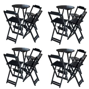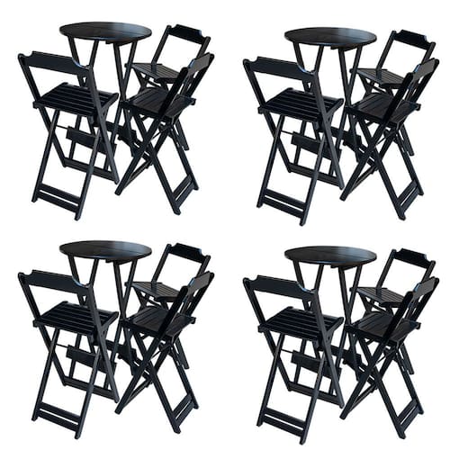 Kit 4 Jogos De Mesa Bistrô De Madeira Dobrável Com 3 Banquetas - Preto Feito em madeira maciça, tornando resistentes e duráveis. Seu design permite que seja encaixado em qualquer ambiente, trazendo um toque a mais para seu estabelecimento. É ideal para bares, restaurantes, estabelecimentos, áreas de lazer e também para sua casa. Feito em madeira maciça, tornando resistentes e duráveis. Seu design permite que seja encaixado em qualquer ambiente, trazendo um toque a mais para seu estabelecimento. Além de sua durabilidade, o que lhe trará conforto para servir seus clientes. Por ser dobrável torna-se mais fácil guardar, manusear e limpar o produto.