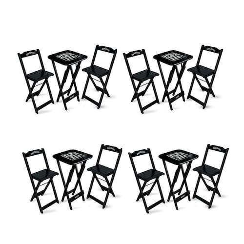 Kit 4 Conjuntos De Mesa Bistrô Dobrável Jack Daniel S Com 2 Banquetas De Madeira Preta