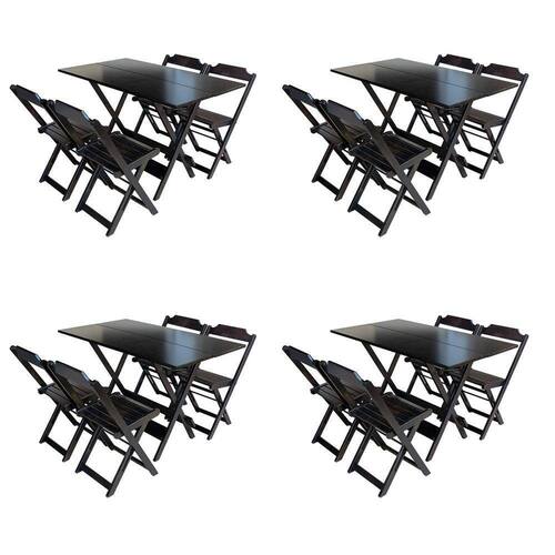 Kit 4 Conjuntos De Mesa Com 4 Cadeiras De Madeira Dobravel 120x70 Tabaco - Cor: Marrom