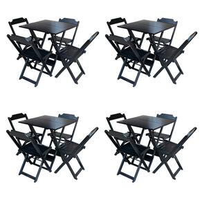 Kit 4 Conjuntos De Mesa Com 4 Cadeiras De Madeira Dobravel 70x70 Preto