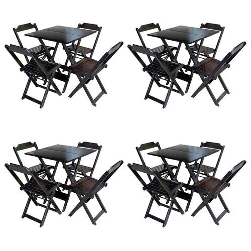 Kit 4 Conjuntos De Mesa Com 4 Cadeiras De Madeira Dobravel 70x70 Tabaco é ideal para bares, restaurantes, estabelecimentos, áreas de lazer e tambem para sua casa. Feito em madeira maciça, tornando resistentes e duráveis. Seu design permite que seja encaixado em qualquer ambiente, trazendo um toque a mais para seu estabelecimento. Além de sua durabilidade, o que lhe trará conforto para servir seus clientes. Por ser dobrável torna-se mais fácil guardar, manusear e limpar o produto. Atenção: EVITE USAR PRODUTOS ABRASIVOS E QUíMICOS PARA LIMPEZA DO PRODUTO, aconselha-se o uso de pano umedecido para melhor conservação; mantenha o produto fora de chuva e sol constantes MESA Cor: Tabaco Modelo: Dobravel Dimensões: Altura 76cm | Largura 70cm | Profundidade 70cm CADEIRA Cor: Tabaco Modelo: Dobravel Dimensões: Altura 80cm | Largura 45cm | Profundidade 42cm