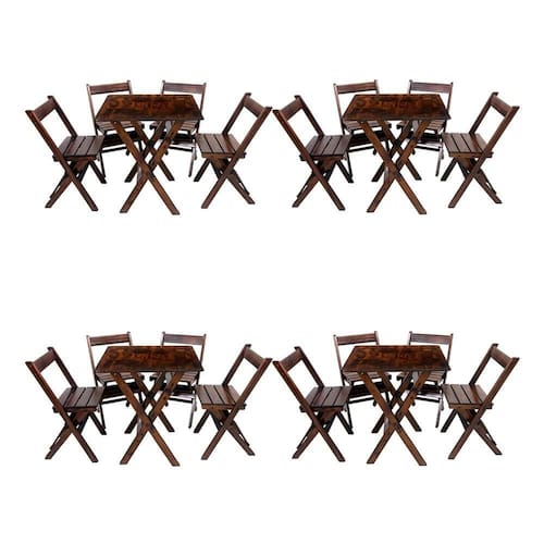 AS IMAGENS SÃO MERAMENTE ILUSTRATIVAS E PODEM SOFRER VARIAÇÕES DE COR E PEQUENOS DETALHES DE ACORDO COM O SEU MONITOR, ILUMINAÇÃO DO AMBIENTE E ATÉ MESMO A SUA PERCEPÇÃO VISUAL.Kit 4 Conjuntos De Mesa DobrÃvel 60x60cm Com 4 Cadeiras Em Madeira MaciÃa - Imbuia
