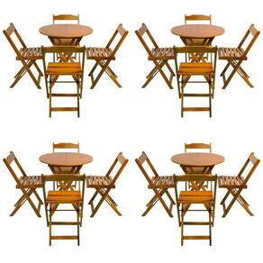 Kit 4 Jogos De Mesa Dobravel Com 4 Cadeiras Tampo Redondo 70x70 Mel é ideal para bares, restaurantes, estabelecimentos, áreas de lazer e tambem para sua casa. Feito em madeira maciça, tornando resistentes e duráveis. Seu design permite que seja encaixado em qualquer ambiente, trazendo um toque a mais para seu estabelecimento. Além de sua durabilidade, o que lhe trará conforto para servir seus clientes. Por ser dobrável torna-se mais fácil guardar, manusear e limpar o produto. Atenção: EVITE USAR PRODUTOS ABRASIVOS E QUíMICOS PARA LIMPEZA DO PRODUTO, aconselha-se o uso de pano umedecido para melhor conservação; mantenha o produto fora de chuva e sol constantes MESA Cor: Mel Modelo: Dobravel Dimensões: Altura 75cm | Largura 70cm | Profundidade 70cm CADEIRA Cor: Mel Modelo: Dobravel Dimensões: Altura 80cm | Largura 45cm | Profundidade 42cmKit 4 Conjuntos de Mesa Dobravel 70x70 Tampo Redondo em Madeira Padrao com 4 Cadeiras - Mel Marca: Preguiçosa