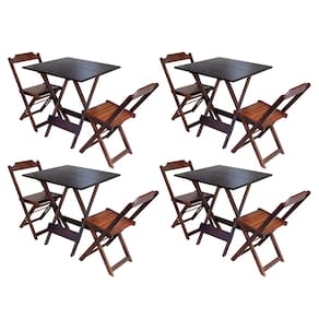 Kit 4 Conjuntos De Mesa Dobravel Com 2 Cadeiras De Madeira 70x70 Ideal Para Bar E Restaurante - Imbuia é ideal para bares, restaurantes, estabelecimentos, áreas de lazer e também para sua casa. Seu design permite que seja encaixado em qualquer ambiente, trazendo um toque a mais para seu estabelecimento. Além de sua durabilidade, o que lhe trará conforto para servir seus clientes. Por ser dobrável torna-se mais fácil guardar, manusear e limpar o produto. Atenção: EVITE USAR PRODUTOS ABRASIVOS E QUíMICOS PARA LIMPEZA DO PRODUTO, aconselha-se o uso de pano umedecido para melhor conservação; mantenha o produto fora de chuva e sol constantes. Dimensões: Medidas da Mesa: Altura: 76cm Largura: 70cm Comprimento: 70cm