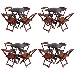 Kit 4 Jogos De Mesa Com 4 Cadeiras De Madeira Dobravel 70x70 Ideal Para Bar E Restaurante - Imbuia