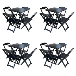 Kit 4 Conjuntos de Mesas Dobraveis 70x70 em Madeira Maciça com 4 Cadeiras - Preto - Preto