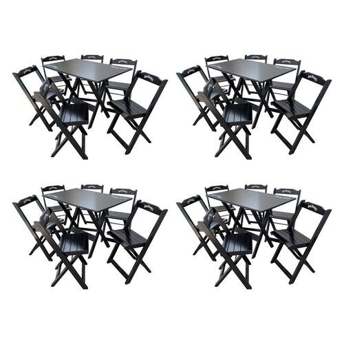 Kit 4 Conjuntos Mesa Dobrável Madeira 110x70 Com 6 Cadeiras Personalizada Jack Preta - Tarimatã