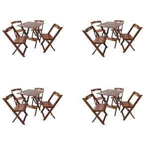 Kit 4 Conjuntos Mesa Dobrável Madeira 70x70 Com 4 Cadeiras Personalizada Hei Imbuia - Tarimatã