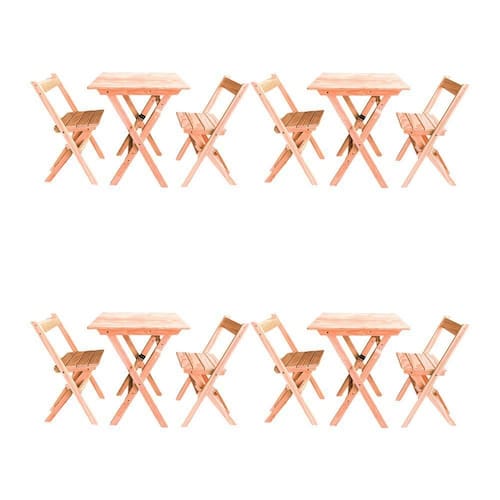 AS IMAGENS SÃO MERAMENTE ILUSTRATIVAS E PODEM SOFRER VARIAÇÕES DE COR E PEQUENOS DETALHES DE ACORDO COM O SEU MONITOR, ILUMINAÇÃO DO AMBIENTE E ATÉ MESMO A SUA PERCEPÇÃO VISUAL.Kit 4 Conjuntos Mesa DobrÃvel Para Bar E Restaurante 60x60cm Com 2 Cadeiras Em Madeira MaciÃa - Cru