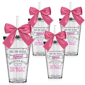 Os Copos Convite são uma forma linda e deliciosa de convidar ou agradecer os pequenos por participarem de uma data tão única. Com capacidade de 550 ml, você tem a opção de encher os copos com todo tipo de doce e assim encantar as futuras Daminhas. O sim delas será GARANTIDO