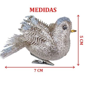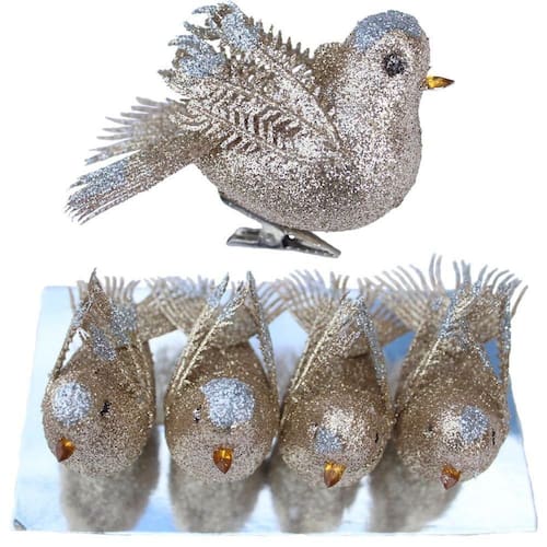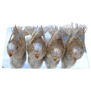 Kit 4 Decoração Natal Presilha Pássaro Bronze Com Glitter