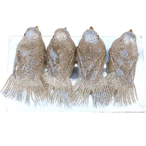 Kit 4 Decoração Natal Presilha Pássaro Bronze Com Glitter -