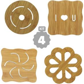 Kit 4 Descanso De Panela De Bambu Madeira Protege Sua Mesa