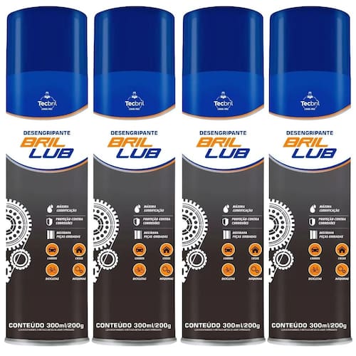 Kit 4 Desengripante Lubrificante Spray 300ml -Tecbril Desengripante Lubrificante Spray 300ml - Alto Poder de Desengripamento e Lubrificação