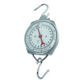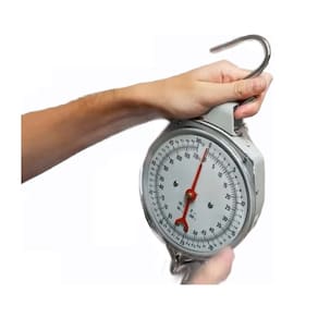 ESPECIFICAÇÕES TÉCNICAS: Indicação: Analógica Graduação de escala: Quilograma (kgf) Construção: Em ferro e Plastico Capacidade: 50kgf (conforme na tabela) Divisão: 0,2Kgf Mostrador: Circular (tipo relógio) Temperatura de operação: 0 a 50°C Umidade relativa: 10 a 95% a 40 °C (não condensado) Dimensões: 220 x 220 x 80mm