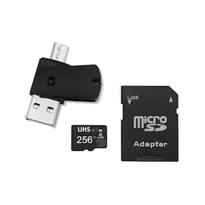 Marca: Multi Modelo: Kit 4 em 1 Cartão de Memória 256GB Ultra High Speed-I U3 + Adptador USB/OTG Tipo C + Adaptador SD - MC154 Cor: Preto Memória: 256GB Velocidade de Gravação: 90 MB/s Velocidade de Leitura: 100MB/s Dimensões -LxAxC-: 9 x 0.05 x 14.5cm Peso: 14g Garantia: 10 anos