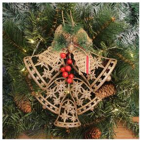 Kit 4 Enfeite Pendente Decoração Natalina Sino Vazado Dourado 25cm