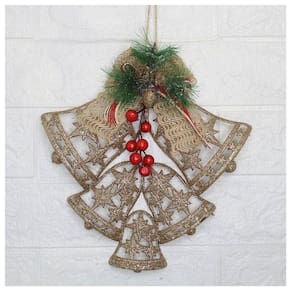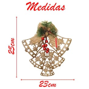Kit 4 Enfeite Pendente Decoração Natalina Sino Vazado Dourado 25cm -