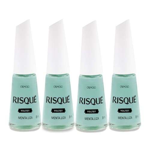 Esmalte Risqué Menta Liza Cremoso 8ml O esmalte Risqué Menta.liza é cremoso, de secagem rápida e com ultra brilho, além de ter longa duração nas unhas. Sua fórmula é hipoalergênica, isto é, livre de componentes que costumam causar alergias e seu pincel proporciona aplicação perfeita e alta cobertura. Toda a linha de esmaltes Risqué apresenta textura única, cores elegantes e acompanha as tendências da moda, possibilitando diversas composições de looks e maximizando a beleza da sua maquiagem e acessórios. Apaixone-se pela cor, presencie a longa duração e viva a beleza de suas unhas de forma única com o Esmalte Menta.liza.