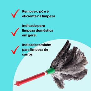 Kit 4 Espanadores Pena De Avestruz 30Cm Duster Limpeza Seca O Espanador de Pena 30Cm Duster é o produto que te auxilia na limpeza retirando todo pó das superfícies sem danificá-las, pois é fabricada com penas de avestruzes proporcionando maciês ao tocar outros objetos. VOCÊ VAI RECEBER:04 Unidades de Espanador de Pena 30cm Duster BENEFÍCIOS- Remove o pó e é eficiente na limpeza- Indicado para limpeza doméstica em geral, cristais, móveis, lustres, computadores, locais de difícil acesso e também vitrines e prateleira- Indicado também para limpeza de carros INFORMAÇÕES TÉCNICAS- Fabricado com penas de avestruzes- Tamanho: 30cm- Imagem meramente ilustrativa