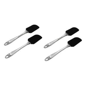 Kit 4 Espátula De Silicone A espátula de silicone é utilizada para que seus pratos sejam preparados de maneira mais rápida, fácil e eficaz. É é uma revolução na cozinha, tem seu diferencial por conseguir raspar os mais difíceis cantos das panelas e frigideiras sem desperdiçar nada e o melhor, sem arranhar o teflon, além de poder ser levada ao fogo também. Preço por Kit com 4 Unidades Características - Material do cabo: plástico - Material da ponta: Silicone - Medida: 27,5 cm Comprimento Observação - Higiênico e de fácil limpeza - Manuseio simples - Não derrete nem arranha as panelas - Resistente e bastante durável - Suporta altas temperaturas