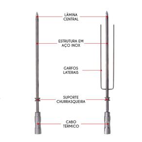 ITENS INCLUSOS: - 3 Espetos Simples (AxLxP): 3,5 x 3,5 x 65cm - 1 Espeto Triplo (AxLxP): 3,5 x 7 x 65cm
