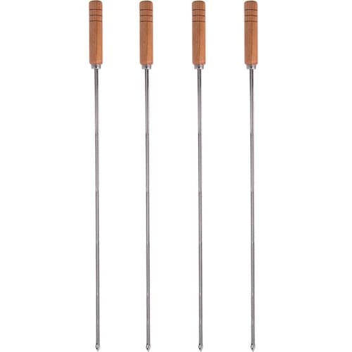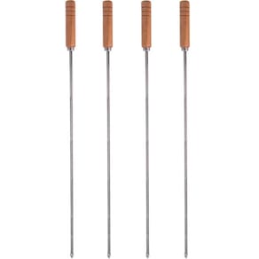 O conjunto de 4 espetos simples da Domama é um kit de alta qualidade, ideal para quem gosta de preparar churrascos com praticidade e eficiência. Os espetos são fabricados em aço inoxidável de alta qualidade, proporcionando resistência à corrosão e durabilidade. Esse material não enferruja facilmente, o que garante que o produto permaneça funcional e esteticamente agradável mesmo após uso prolongado. O cabo de madeira dos espetos proporciona grande conforto e segurança. A madeira oferece uma pegada firme e ergonômica, garantindo maior controle sobre os espetos. Os espetos são perfeitos para assar diversos tipos de carnes, como bovina, suína, frango e até mesmo vegetais. A sua robustez permite que sejam utilizados com cortes grandes e pequenos, mantendo os alimentos fixos durante o processo de assar na churrasqueira.