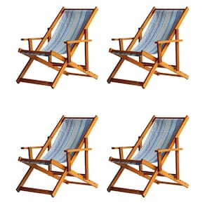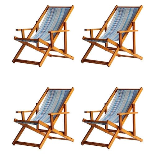 Kit 4 Espreguiçadeira Preguiçosa Dobrável Mel Cb-listras Azuis