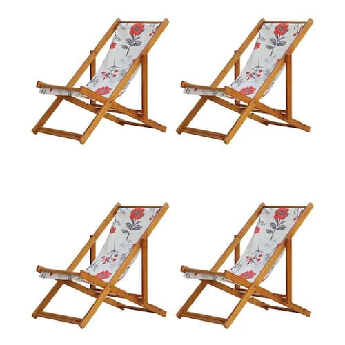 Kit 4 Espreguiçadeira Preguiçosa Dobrável Mel Sb-cinza Floral 4 ESPREGUIÇADEIRAS ENVERNIZADA MEL S/BSabe aquele final de tarde que você tanto espera para tirar um descanso merecido? Ou aquela viagem para a praia programada a meses com a família? Pois é, nossas cadeiras espreguiçadeira serve exatamente para esses momentos, com várias opções de cores, os tecidos além de charmosos são hidro-repelentes e se adequam a qualquer ambiente, facilmente removíveis para higienização.Estrutura 100% de madeira maciça e verniz especial, que garante sua qualidade e durabilidade, a espreguiçadeira é totalmente dobrável e reclinável (4 posições de ângulo), perfeita para seu lazer em todos os ambientes, seja ele externo ou interno, esse é o item que definitivamente não pode faltar na vida de quem de fato, quer aproveitar bons momentos! FICHA TÉCNICA DO PRODUTO:04 Níveis de Regulagem de Altura;Tecido Reforçado;Fabricada em Madeira Maciça Pinus;Peso aproximado: 7,5 Kg;Suporta aproximadamente 120 kg;Cor da Madeira: Mel;Acabamento: Envernizada Dimensões aproximadas do Produto:Altura 1: 69 cm;Altura 2: 82 cm;Altura 3: 91 cm;Altura 4: 100 cm;Profundidade: 105 cm. Dimensão aproximada total:Comprimento: 135 cm;Largura: 60 cm; Informações Adicionais:Garantia: 90 dias contra defeitos de fabricação.Acompanha 4 cadeiras Obs. A cor pode variar da foto conforme a tonalidade da madeira e iluminação..